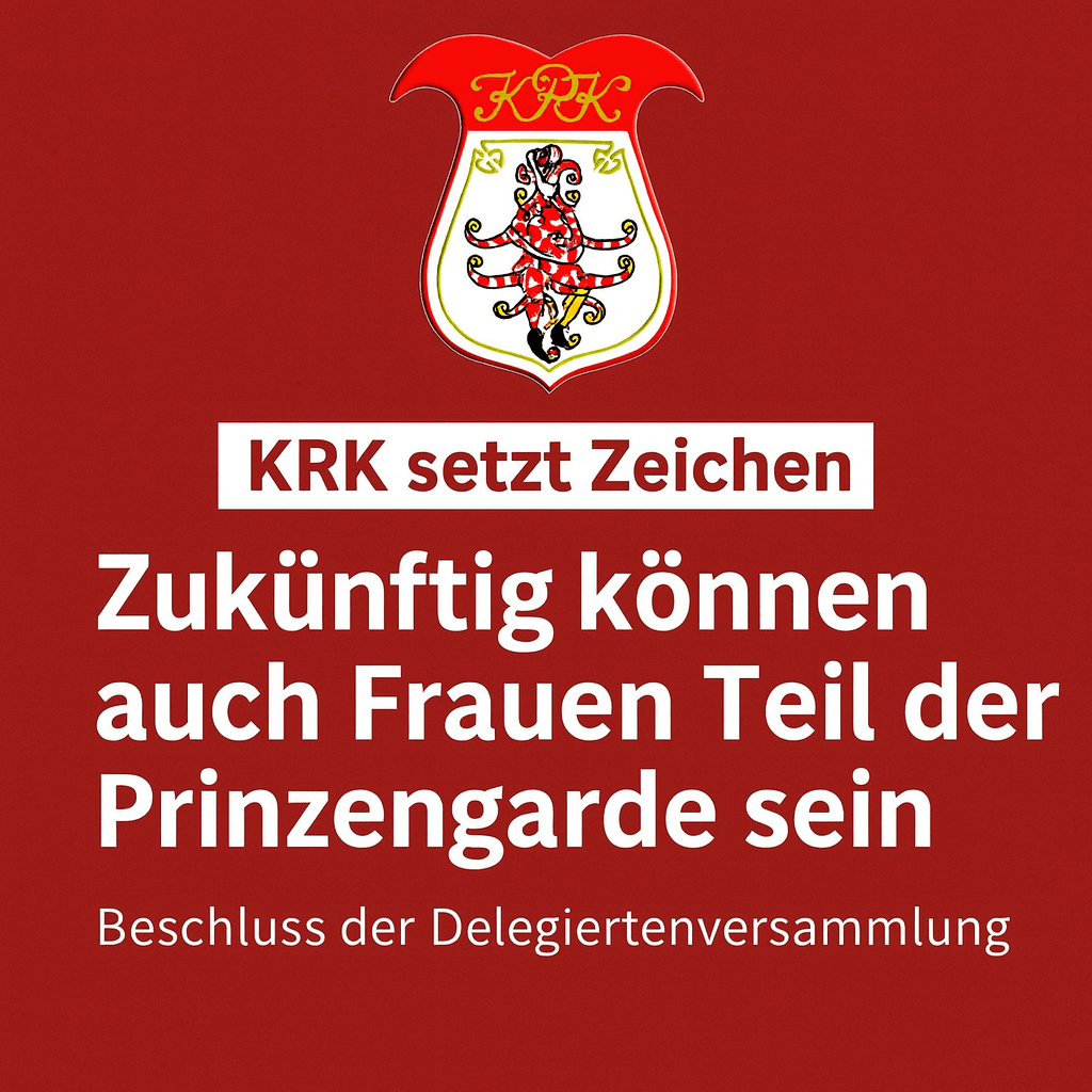 Die Delegiertenversammlung des Klever Rosenmontags-Komitees (KRK) hat in ihrer aktuellen Sitzung (15.12.2025) einen richtungsweisenden Beschluss gefasst. Per Abstimmung wurde entschieden, dass es zukünftig dem jeweiligen Prinzen der Stadt Kleve freigestellt ist, auch Frauen als Gardistinnen in seine Prinzengarde aufzunehmen.